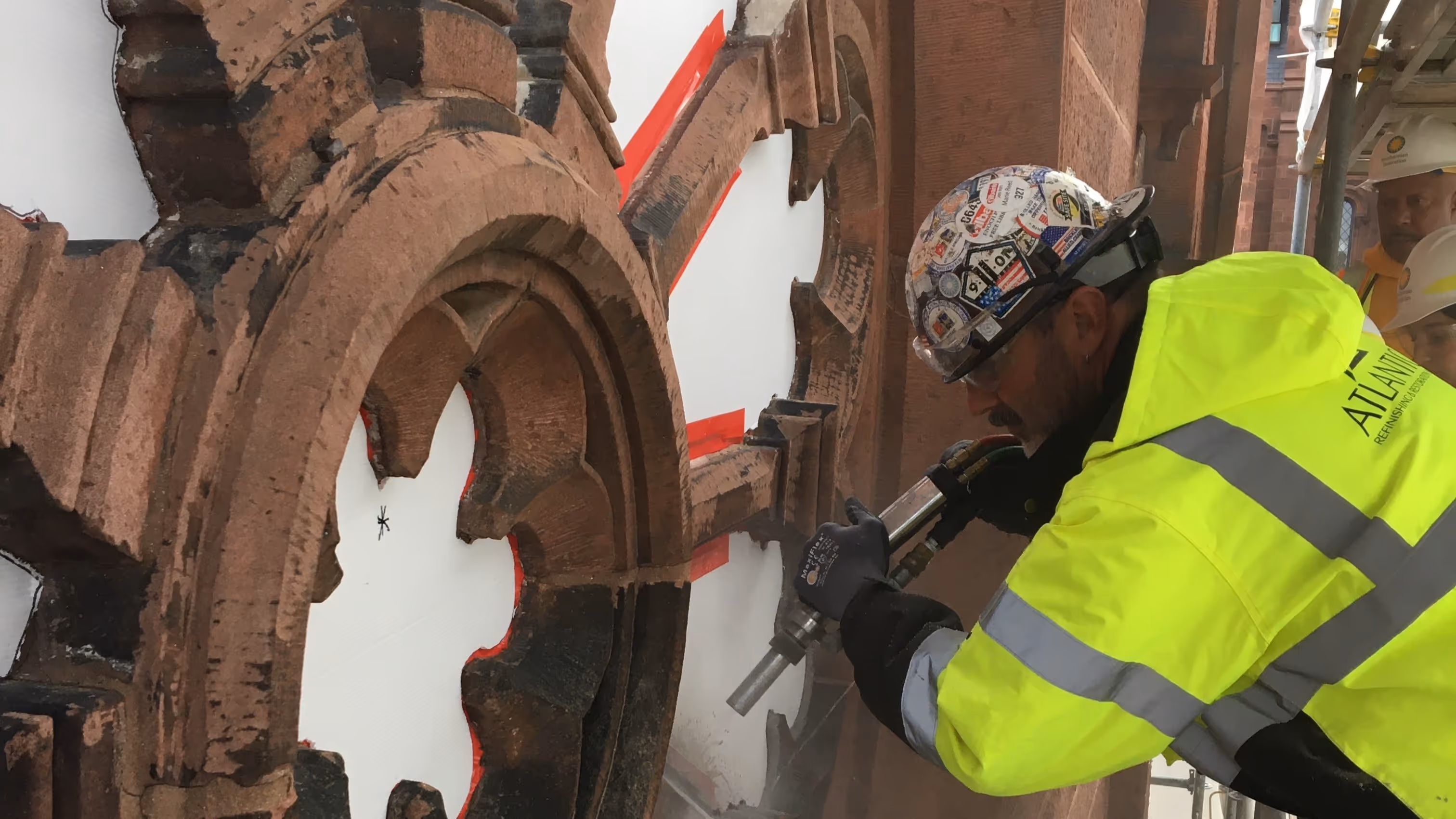 - Cleaning with approved methods for historic fabric (low-pressure water, poultice, micro-abrasive)